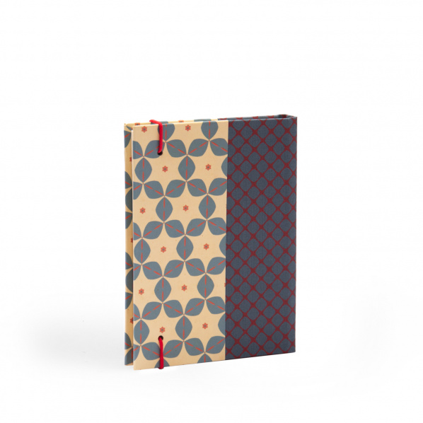 There is a choice of five different, coordinated pattern combinations of JACKIE paper and screen printed linen as covers. Round rubber bands in matching colors to the covers are used for closing.